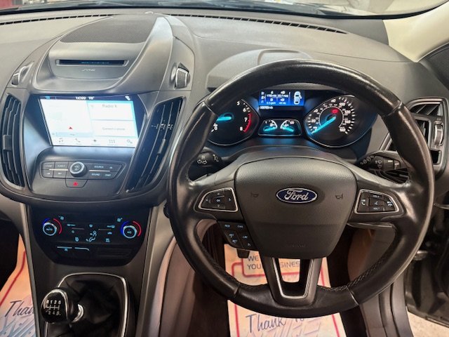 Facelift model Kuga finished in clean metallic paint with attractive 17" alloys, keyless start with 2 remote fobs, digital air con, parking sensors and FordSync media with touch screen sat nav, Bluetooth, DAB radio and Apple & Android CarPlay. Only 2 previous keepers with documented service history and prepared for sale with new MOT and service so drive away with confidence including 6 month nationwide warranty.